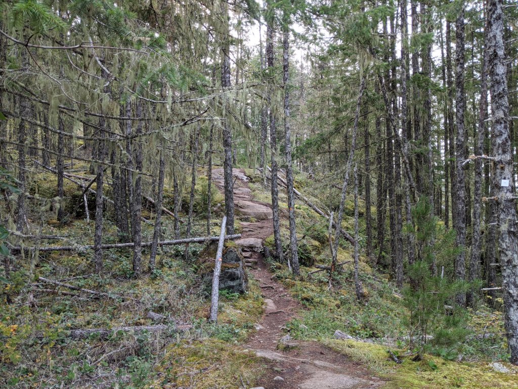 I woke slowly. No rush today. 7 more kms is all that lies in front of me until my destination. Enjoyed breakfast and coffee on the dock before heading out. I passed through some new growth, before making my way over the last hurdle of the trail. Scout mountain. Nice rolling hills up to the top and an opportunity to look down over the town. From there it was the home stretch.