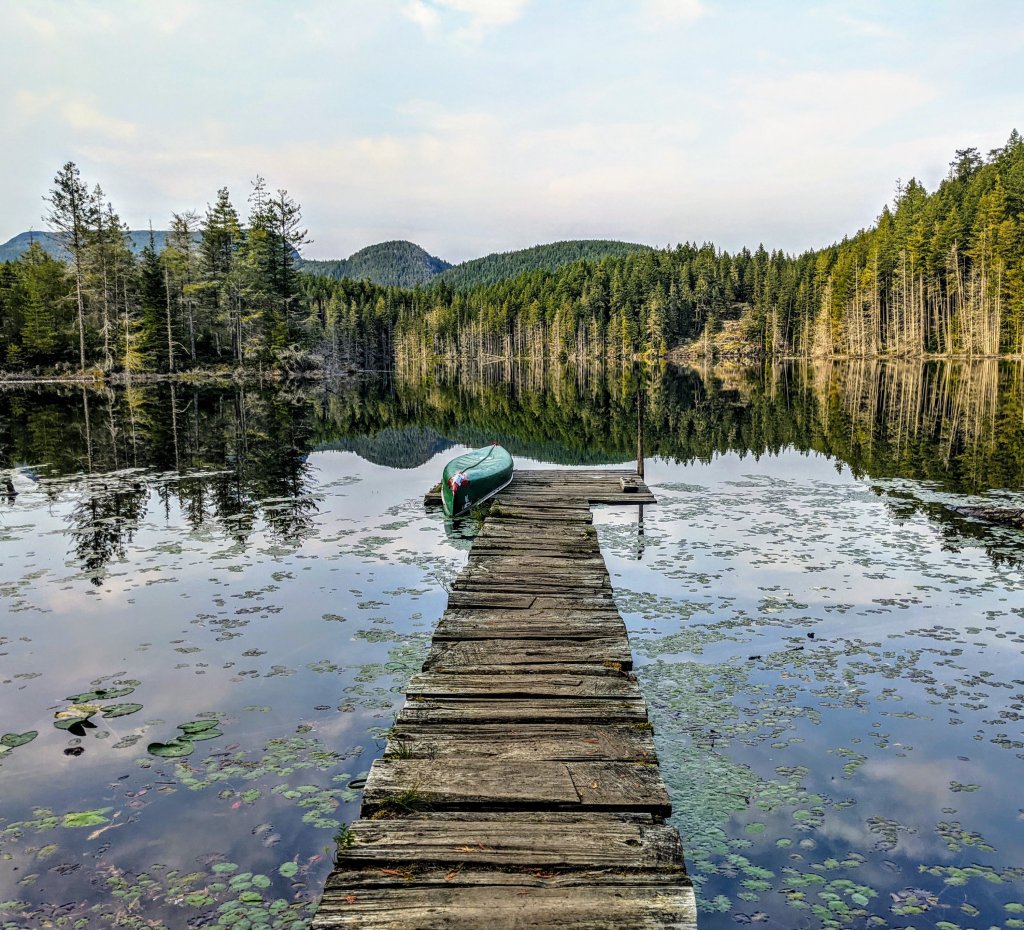 I finally reached camp and dropped my pack. Satisfied with my efforts up til now. I had tackled 43 kms of the trail, and a short day tomorrow would get me into Powell River. I ate, set up camp. Wrestled with snakes every 10 metres or so. I don’t have a problem with them so long as they just pass me by, but I swore if any of them turned towards me, it would have been world ender for them. There was a cool dock I checked out before calling it a night.