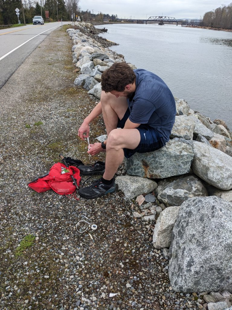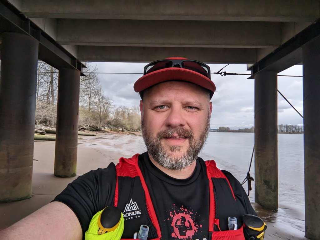 We meet Monday morning, much earlier than the previous start due to the availability of our lovely wives being off work, supporting us to literally spend the day running. We begin at the same starting point, make the same first 15km to the casino, same coffee, same banana bread. All good. This time, no kid, no stitches. Just run this bitch! We continue along the northern side of Richmond, past warehouses, and warehouses, and warehouses. Jeez, is there anything else here. We get rerouted at a mill that used to have a pedestrian underpass, but has been shut down for a (less favorable) complete reroute so that folks could contend with sharing the road with semi’s, dump trucks, and large automobiles we all like being inches from. Yay!